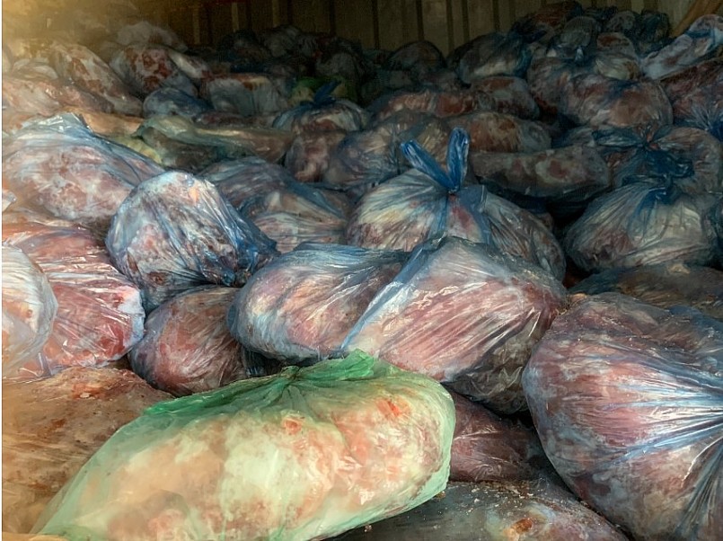 Số hàng hóa trên được ông tích trữ trong thời gian khoảng tháng 7/2023 tại kho đông lạnh tại khu đất trang trại chăn nuôi của gia đình để làm thức ăn nuôi cá và bán cho các hộ gia đình nuôi cá có nhu cầu mua thịt làm thức ăn cho cá để kiếm lời. Tuy nhiên, ông Minh đang trữ đông thịt lợn, chưa kịp sử dụng làm thức ăn cho cá và bán ra ngoài thì bị phát hiện.