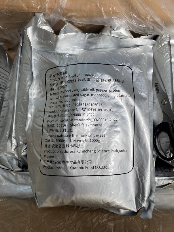 Đội Quản lý thị trường (QLTT) số 5 TP Hà Nội 384 gói nước sốt bò cay Beef Chili Sauce (1000g/gói) do nước ngoài sản xuất không có hóa đơn, chứng từ.