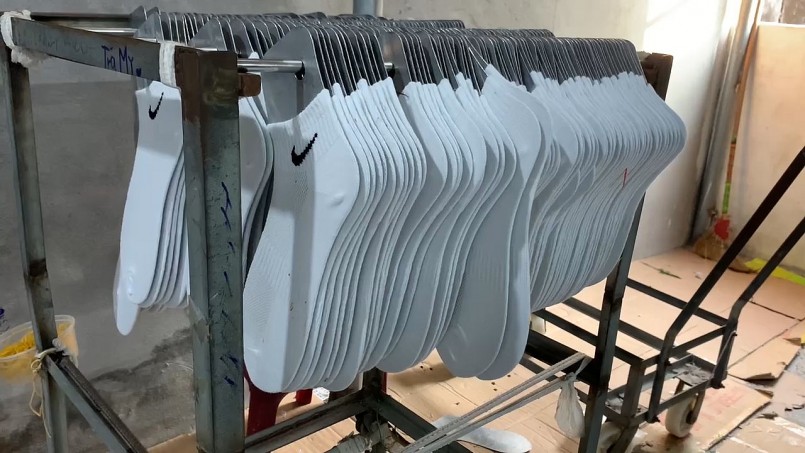 Quy trình sản xuất đã được tự động hóa hoàn toàn nên chỉ trong vài phút các sản phẩm bít tất đã được dệt thành phẩm. Dù chưa xuất trình được hợp đồng gia công hay bất cứ giấy tờ liên kết hợp pháp với thương hiệu lớn nào- nhưng bước đầu lực lượng chức năng ghi nhận vô số sản phẩm bít tất giả mạo nhiều nhãn hiệu đã được bảo hộ vẫn được ra lò tại đây như Nike, Adidas, Mizuno, Uniqlo...