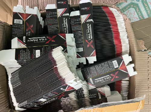 Ngoài số hàng hóa thành phẩm trên, lực lượng chức năng còn ghi nhận tại cơ sở này, có 4.070 lọ nhựa chứa viên sủi (20 viên/lọ, không có nhãn mác), 67 kg viên thuốc các loại (không có nhãn mác), 44.656 chiếc tem nhãn giấy các loại có chữ Lady, Xtraman, Toca, V3, tem chống hàng giả, 15.478 chiếc vỏ hộp giấy các loại, 1 chiếc máy khò nhiệt và 1 chiếc máy ép nhiệt đã qua sử dụng.