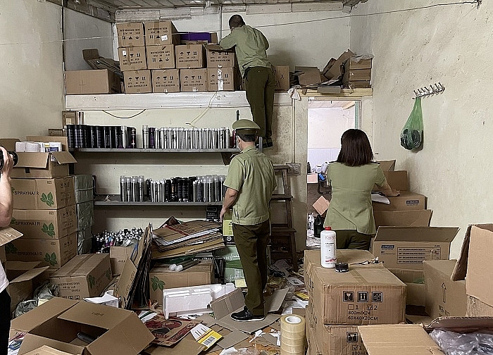Tại thời điểm kiểm tra, cơ sở kinh doanh của ông Trường đang chứa trữ gần 50.000 sản phẩm dầu gội đầu, sáp vuốt tóc, keo xịt tóc, dưỡng tóc các loại dành cho nam giới và tem nhãn rời (trong đó, một số đã được dán nhãn và một số chưa dán nhãn).