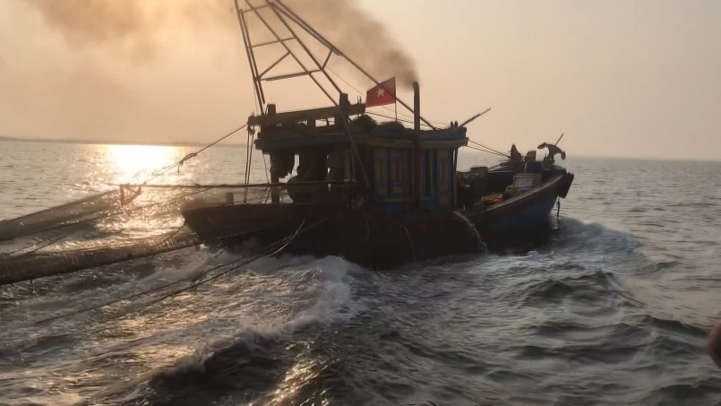 | Tàu cá đánh bắt hải sản bằng hình thức giã cào sai quy định. Ảnh: BPHT |