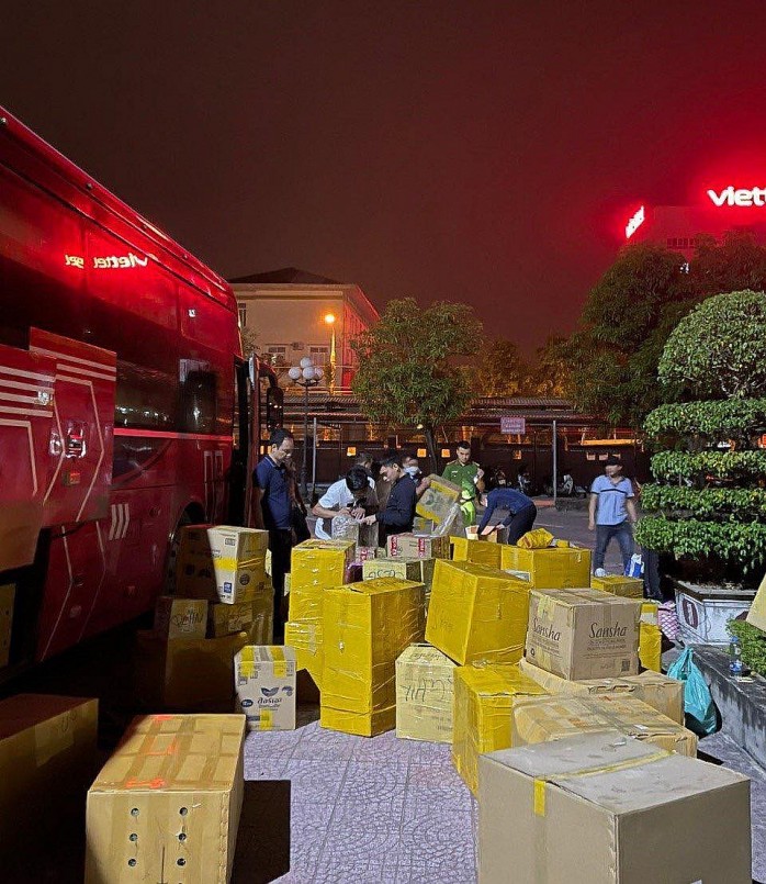 | Số lượng lớn sản phẩm hàng hóa trên xe khách. Ảnh: CACC |