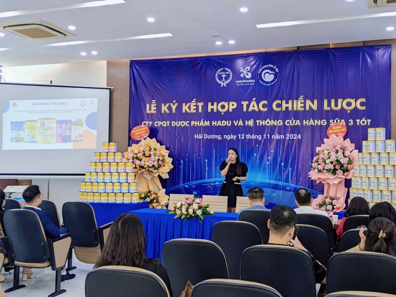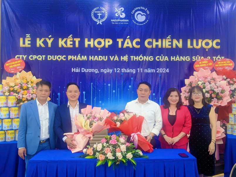 Sáng ngày 12/11/2024, tại Nhà máy Hadu Pharma huyện Cẩm Giàng, tỉnh Hải Dương, lễ ký kết hợp tác chiến lược giữa Công ty Cổ phần Quốc tế Dược Phẩm Hadu (Hadu Pharma) và Hệ thống Cửa hàng Sữa 3 Tốt đã được tổ chức long trọng. Sự kiện đã đánh dấu một cột mốc quan trọng giúp đưa thương hiệu Hadu Pharma cùng các sản phẩm dinh dưỡng chất lượng cao tiếp cận rộng rãi hơn với người tiêu dùng, đồng thời đây cũng là cơ hội tạo đà cho mối quan hệ hợp tác phát triển bền vững cho cả hai doanh nghiệp.