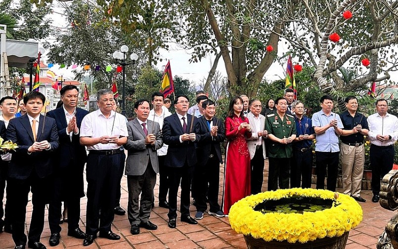 | Các đồng chí lãnh đạo thực hiện nghi thức dâng hương. |