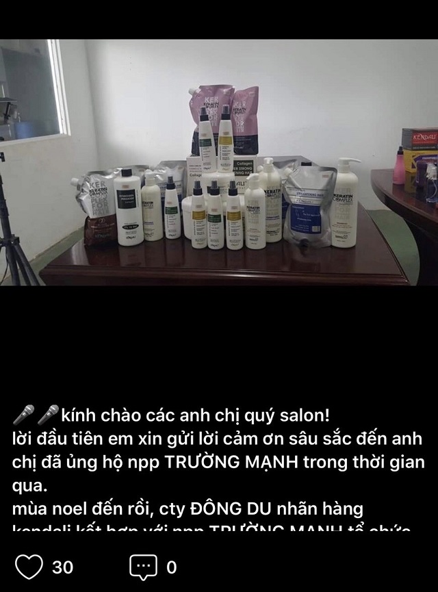 Mỹ phẩm không rõ nguồn gốc, xuất xứ được rao bán trên trang cá nhân của phụ liệu tóc Trường Mạnh.