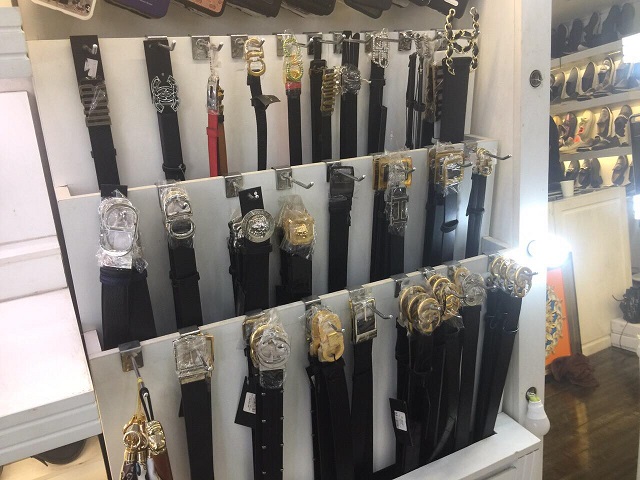 Số 71 Hàng Đường tạm giữ 131 sản phẩm gồm 91 sản phẩm dây lưng da do nước ngoài sản xuất không có hoá đơn chứng từ, chứng minh và 40 sản phẩm ví da, dây lưng da có dấu hiệu giả mạo các nhãn hiệu Versace, Polo, Calvin klein, Hermes, Gucci, Montblanc.