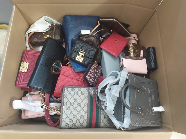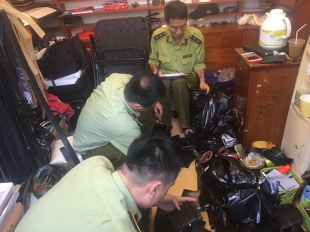 Trong đó có 1.626 sản phẩm túi xách, ví da, phụ kiện thời trang, thắt lưng, quần, mũ, dép, áo sơ mi, giầy, xăng đan có dấu hiệu giả mạo các nhãn hiệu Burrbery, Lacost, Fendi, Nike, Adidas, Gucci, Chanel, LV, Hermes, Dior, Valentino, Ferragamo, LV, Salvatore Ferragamo, Goyard, Louboutin, Lascote, Versace, Polo, Calvin Klein, Montblanc và 748 sản phẩm quần áo, mỹ ký, dây lưng không có hóa đơn, chứng từ.