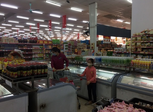 Tại một siêu thị lớn ở Chúc Sơn buổi sáng ngày 8/3, hàng hóa được các nhân viên xếp đầy trên các kệ, trong khi lượng người dân mua sắm tại đây không nhiều.