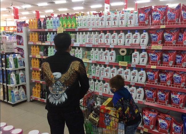 Các mặt hàng thiết yếu được siêu thị bày rất nhiều trên các kệ hàng