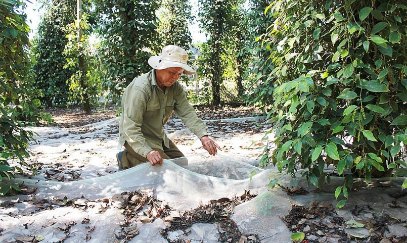 | Vụ thu hoạch hồ tiêu năm nay năng suất giảm, giá bán cũng rất thấp nên người dân không còn mặn mà với cây "vàng đen" một thời. |