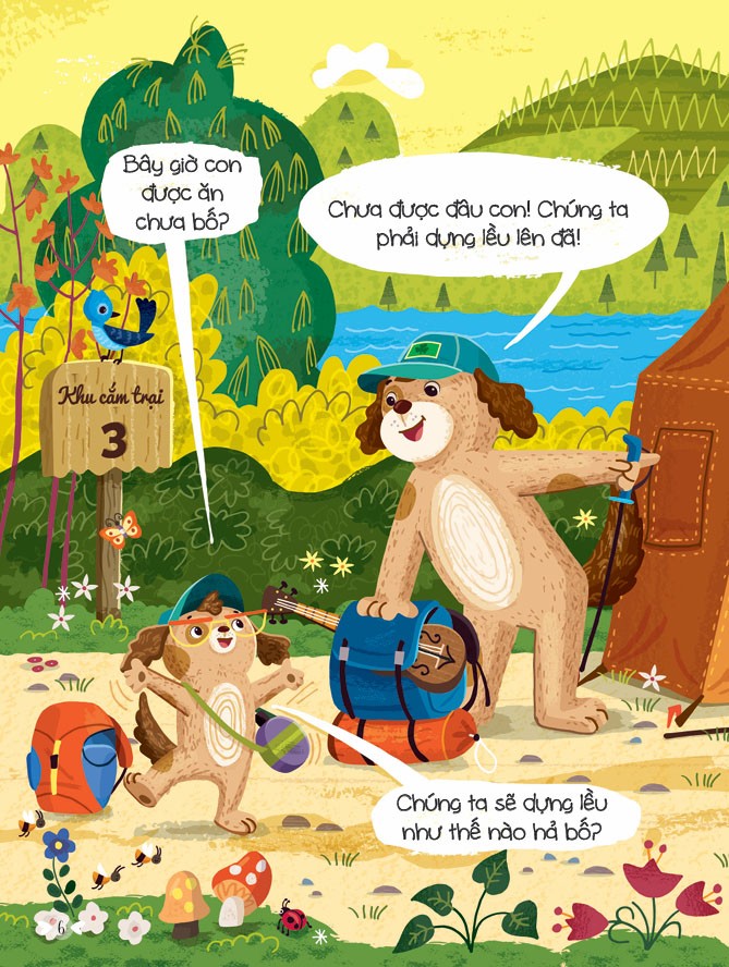 Trong chuyến cắm trại cùng bố và các bạn, bé cún luôn muốn ăn bánh ngay, nhưng bố khuyên cậu hãy kiên nhẫn chờ đợi và tận hưởng các hoạt động khác trong lúc chờ. Cuối cùng, cún nhỏ đã có những trải nghiệm thú vị và thưởng thức chiếc bánh thật ngon. Câu chuyện giúp trẻ học được sự kiên nhẫn và biết chờ đợi để đạt được điều mình mong muốn.
