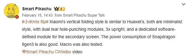 Leaker @SmartPikachu đã tiết lộ cái nhìn mới về Xiaomi MIX Flip, gợi ý về một thiết kế gợi nhớ đến phong cách tối giản như của Huawei.