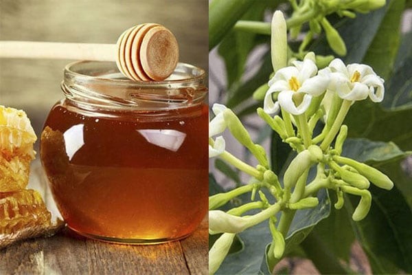 Cho hoa đu đủ vào hũ/bát, đổ mật ong ngập mặt hoa;