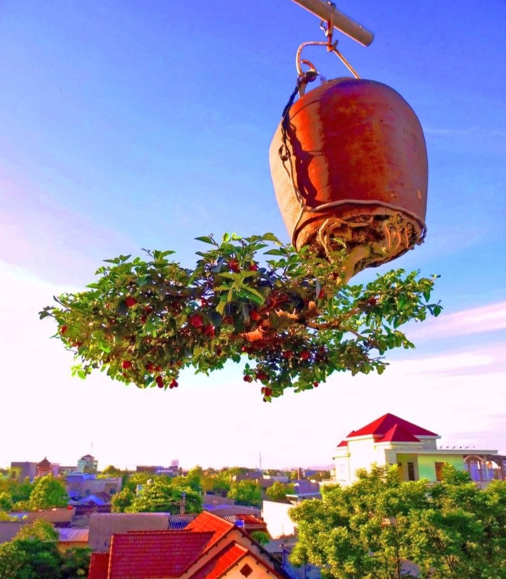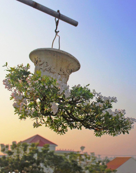 Còn “chậu” cho bonsai ngược thì được sử dụng vô cùng phong phú, thể hiện sức tưởng tượng, đi kèm với chút sáng tạo qua các chậu với một cái lu, cái độc bình cắm hoa, thậm chí là một cái ché rượu...”, dị nhân Thạnh chia sẻ.