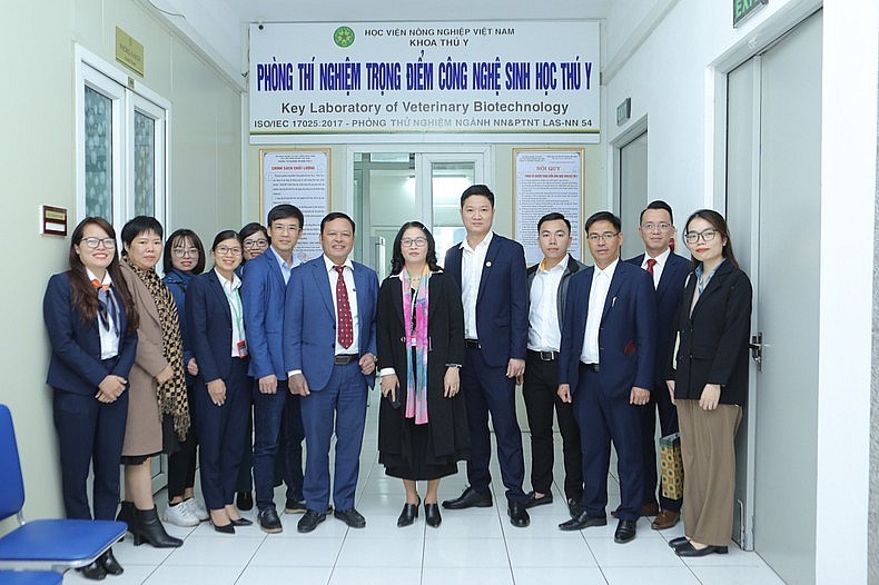 | Các đại biểu thăm quan Phòng thí nghiệm trọng điểm Công nghệ sinh học Thú y. |