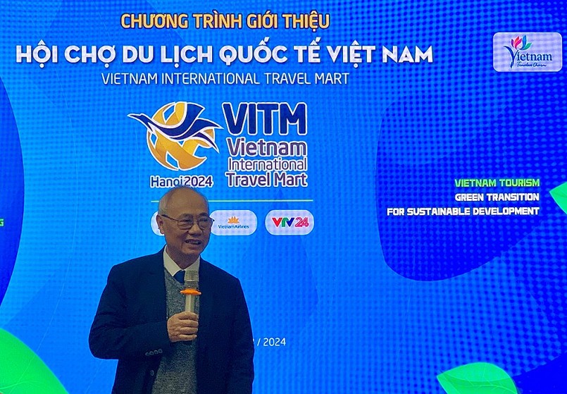 Ông Vũ Thế Bình - Chủ tịch Hiệp hội Du lịch Việt Nam thông tin về Hội chợ VITM Hà Nội 2024.