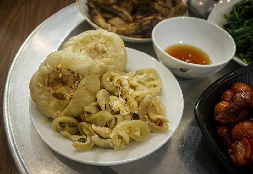 Miếng cà dầm giòn, ngon, đậm vị, trở thành món ăn đặc sản của làng Khương Hạ.