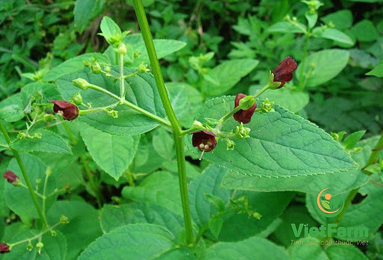 Cây huyền sâm là loài cây thuốc quý, thân thảo sống lâu năm cao chừng 1,5 – 2m. Thân cây vuông có màu xanh và rãnh dọc trên thân. Lá cây có màu tím xanh, mọc đối hình chữ thập, hình trứng đầu lá hơi nhọn. Cuống lá ngắn, phiến lá dài 3 – 8cm, rộng 1,8 – 6cm, xung quanh mép lá có răng cưa nhỏ và đều.