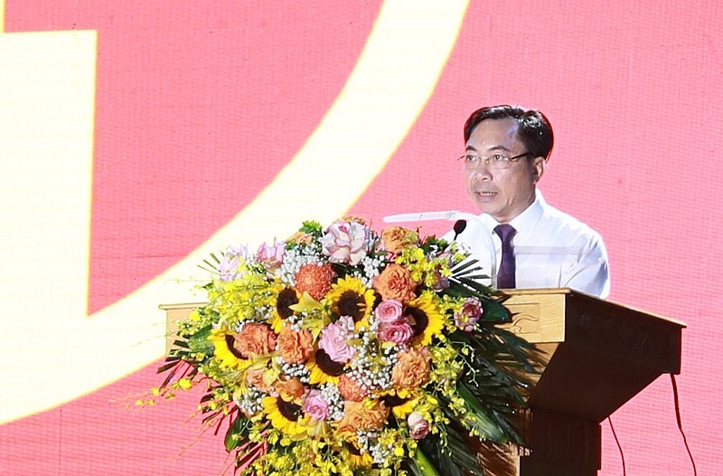 | Chủ tịch UBND huyện Thạch Thất Nguyễn Mạnh Hồng phát biểu tại buổi lễ. |