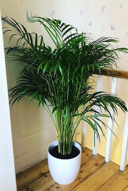 Cây cau cảnh và dừa cảnh có rất nhiều ưu điểm phù hợp khi trồng trước nhà: thân cây mảnh mai, thẳng tắp, cao vút không ngăn cảnh ánh sáng, nắng sớm và những làn gió mát lành vào nhà.