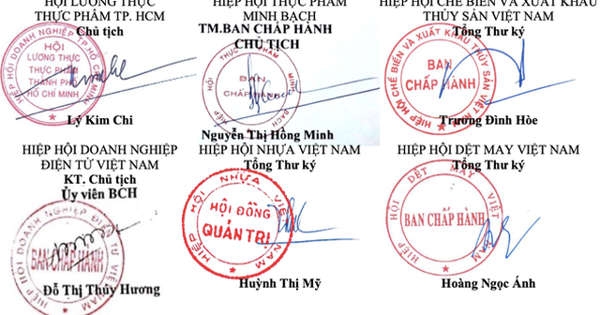 Cụ thể, 14 hiệp hội và một số nghành hàng cùng thỏa thuận ký kiến nghị đến Thủ tướng gồm: Lương thực thực phẩm TP HCM, Thực phẩm minh bạch, Chế biến và xuất khẩu thuỷ sản Việt Nam; Doanh nghiệp điện tử Việt Nam; Nhựa Việt Nam, Dệt may Việt Nam; Bia – rượu – nước giải khát Việt Nam; Doanh nghiệp hàng Việt Nam chất lượng cao; Da giày – Túi xách Việt Nam; Mỹ nghệ và chế biến gỗ TP HCM; Gỗ và Lâm sản Việt Nam; Sữa Việt Nam; Giấy và bột giấy Việt Nam; Chè Việt Nam.