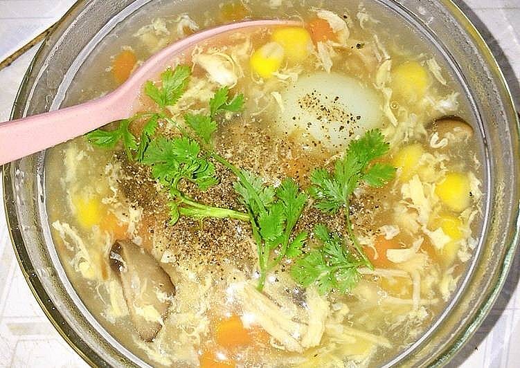 Các mẹ có thể tham khảo và chế biến món súp gà luộc này cũng dễ lắm nha. Gà chỉ cần luộc chín, xé sợi. Nấm mèo, nấm đông cô cắt sợi nhỏ rồi xào chín. Sau đó, cho gà, nước lọc vào nấu, thêm 1 quả trứng vào khuấy đều, một chút nước bột năng để súp có độ sệt vừa phải. Cuối cùng múc ra và thưởng thức. Món súp gà rất dễ ăn mà lại có tác dụng làm mát cơ thể.