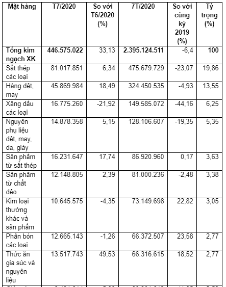 Tuy nhiên con số tăng trưởng của tháng 7 chưa đủ để kéo tổng kim ngạch xuất khẩu hàng hóa của Việt Nam sang thị trường này trong 7 tháng đầu năm thoát khỏi mức âm.