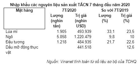 7 tháng năm 2020, nhập khẩu thức ăn chăn nuôi và nguyên liệu giảm nhẹ