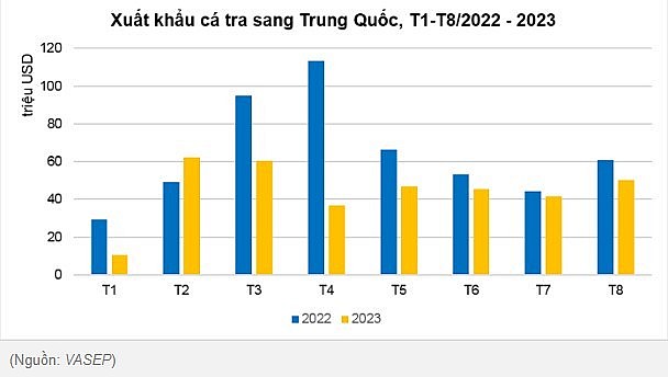 | 8 tháng năm 2023, xuất khẩu cá tra sang Trung Quốc giảm mạnh |