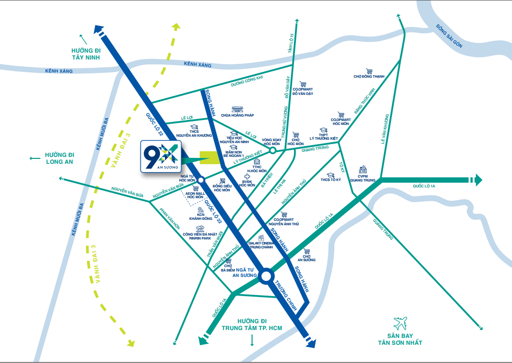 Vị trí lý tưởng tại khu Tây Bắc TP.HCM của dự án 9X An Sương. |