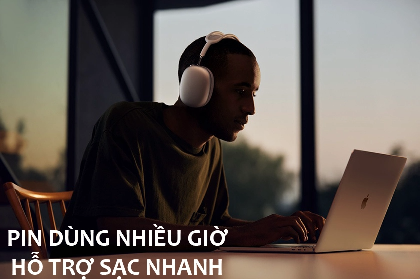 Khi được cất trong Smart Case chuyên dụng, tai nghe AirPods Max sẽ tự động chuyển sang trạng thái tiêu thụ năng lượng thấp để tiết kiệm pin tối ưu và kéo dài thời gian sử dụng. Công nghệ sạc nhanh đem tới khả năng sạc 5 phút và đem tới 1,5 giờ nghe nhạc liên tục sau đó. Khi ở trạng thái đầy năng lượng, AirPods Max cho phép bạn đàm thoại, nghe nhạc, xem phim suốt nhiều giờ dù có kích hoạt chống ồn chủ động ANC.