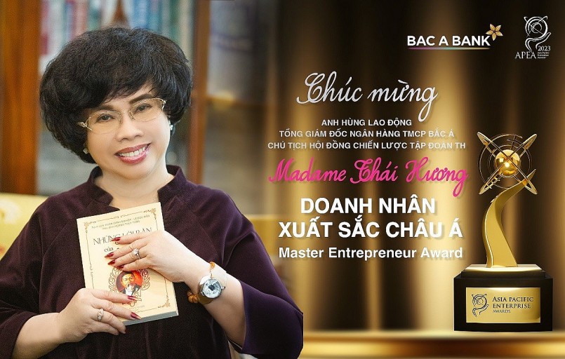 Những đóng góp cho việc tạo ra thế hệ khách hàng phát triển bền vững đã giúp Ngân hàng TMCP Bắc Á ghi danh vào bảng vàng giải thưởng Asia Pacific Enterprise Awards (APEA). Không chỉ vinh danh BAC A BANK là “Doanh nghiệp xuất sắc châu Á”, APEA 2023 còn trao tặng bà Thái Hương, TGĐ Ngân hàng danh hiệu “Doanh nhân xuất sắc châu Á”.