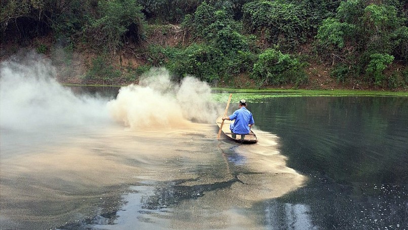 | Hộ chăn nuôi rắc chế phẩm vi sinh khắc phục tình trạng ô nhiễm trên sông Thương |
