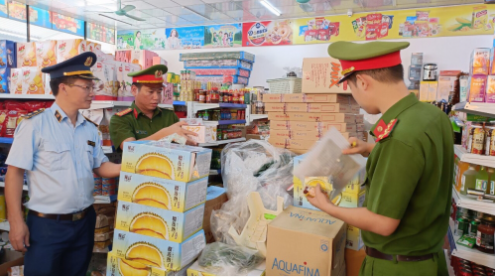 Tại thời điểm kiểm tra, lực lượng chức năng phát hiện tại cơ sở đang kinh doanh 2.420 sản phẩm hàng hóa là thực phẩm không rõ nguồn gốc, xuất xứ (gồm: 350 chiếc bánh dẻo, 1.280 chiếc bánh bông lan, 350 chiếc xúc xích, 440 túi cánh vịt tẩm ướp).
