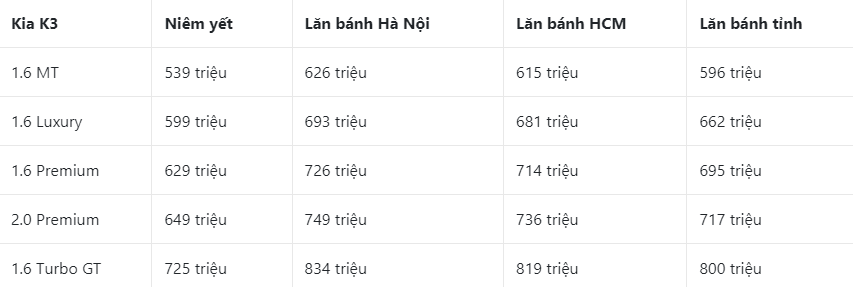 | Giá xe Kia K3 niêm yết & lăn bánh mới nhát giữa tháng 8/2023 |