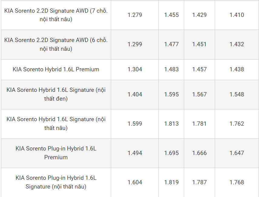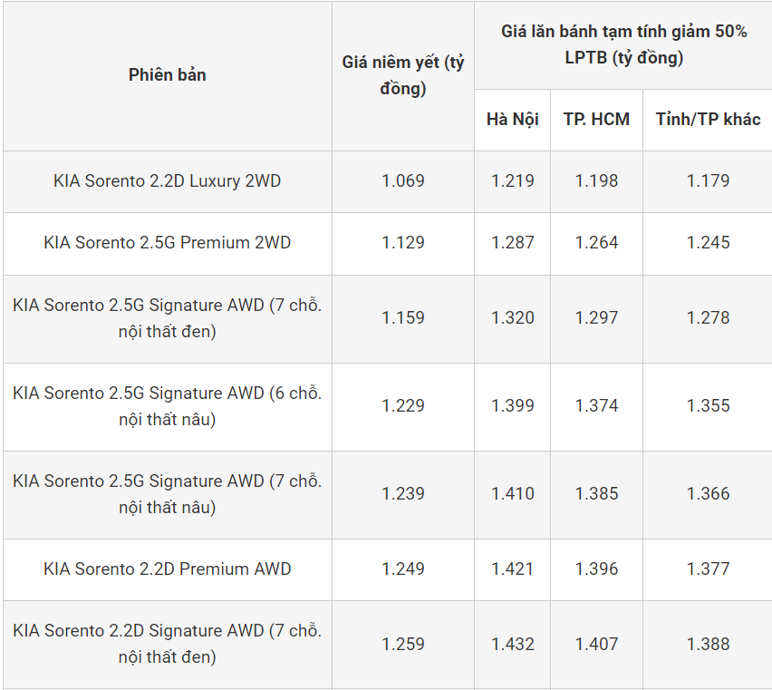 Tham khảo giá niêm yết và lăn bánh tạm tính của KIA Sorento cập nhật tháng 3/2024
