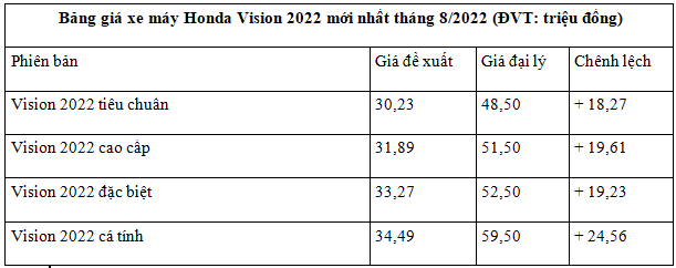 | Giá Honda Vision 2022 có thể chênh lệch tùy vào từng đại lý khác nhau. |