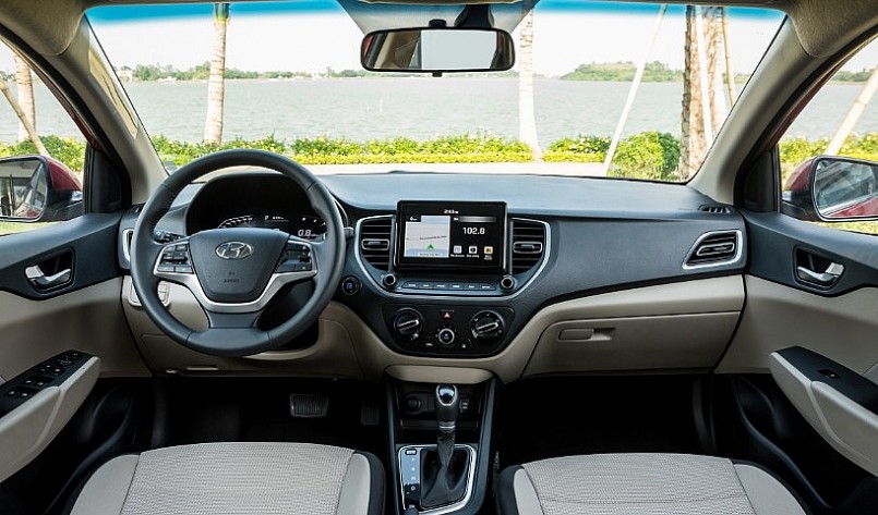 Hyundai trang bị cho Accent vô-lăng bọc da cao cấp, tích hợp các phím bấm điều khiển rảnh tay hỗ trợ tài xế. Ở phía sau tay lái, kỳ phùng địch thủ của Toyota Vios và Honda City có màn hình LCD kích thước 4,2 inch hiển thị các cài đặt trên xe. Hyundai Accent còn sở hữu nhiều trang bị hấp dẫn khác như cốp sau điều khiển điện thông minh, gương chiếu hậu chống chói, cửa sổ trời, gạt mưa tự động, đèn pha tự động, cửa gió điều hoà cho hàng ghế sau, ngăn chứa đồ tích hợp làm mát, điều hoà tự động…