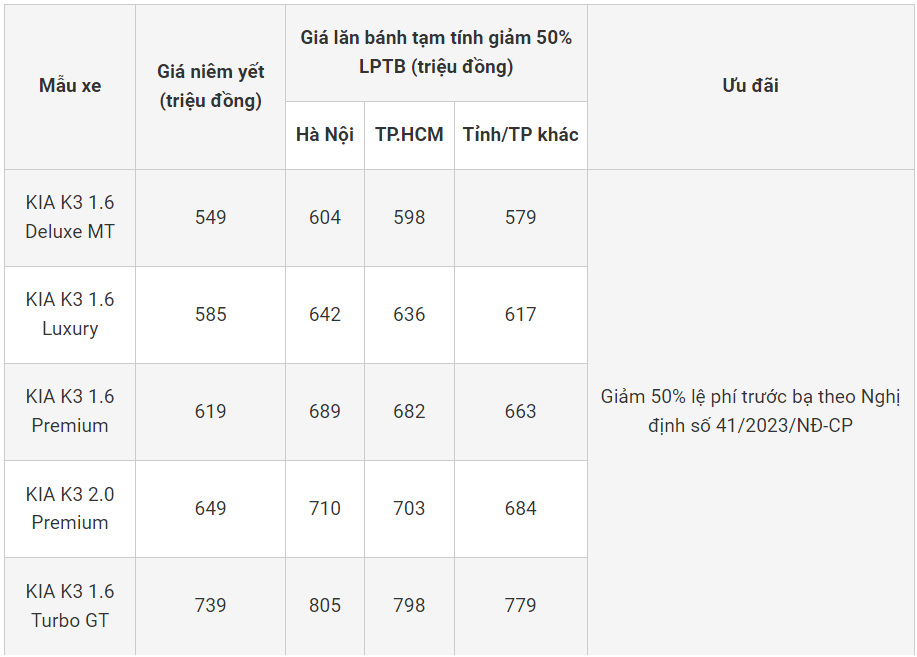 Tham khảo giá niêm yết và lăn bánh tạm tính xe KIA K3 cập nhật tháng 12/2023