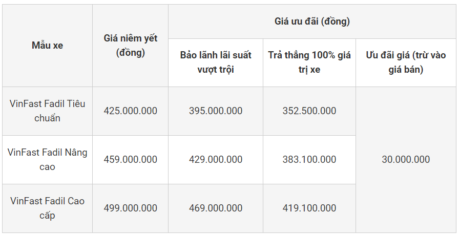 Ô tô VinFast Fadil đã gây nhiều sự chú ý khi là mẫu hatchback đô thị cỡ nhỏ đến từ Việt Nam đầu tiên. Mặc dù đã ngừng sản xuất nhưng Fadil vẫn đang là cái tên được nhiều khách Việt ưa chuộng và tìm mua. Khảo sát trong tháng 7, VinFast Fadil đang có giá ưu đãi hấp dẫn kể từ khi ra mắt đến nay.