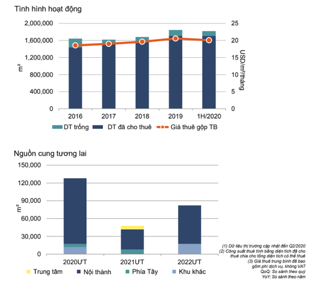 Bà Hằng cảnh báo đến năm 2022, khoảng 258.000 m2 nguồn cung mới, chủ yếu thuộc Hạng A, sẽ gia nhập. Nguồn cung ngày càng mở rộng ra ngoài Trung tâm và tập trung tại khu vực Nội thành còn khu vực Trung tâm không ghi nhận dự án nào. Nguồn cung này cùng tâm lý thận trọng có thể khiến công suất thuê trung bình giảm trong hai năm tới. Giá thuê trung bình được dự báo sẽ giảm khoảng -2% trong năm 2020 nhưng hồi phục chậm vào năm 2021.