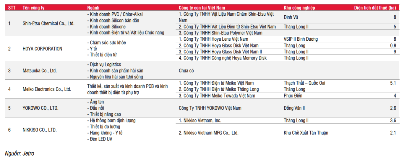 Danh sách các công ty Nhật Bản mở rộng sản xuất ở Việt Nam.