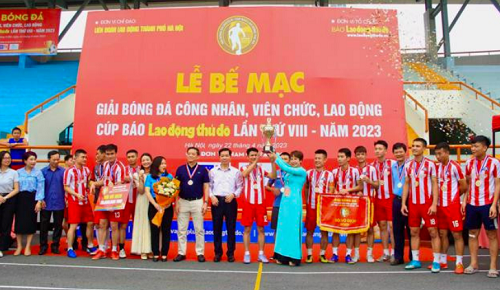 Sáng 22/4 tại Sân vận động Tây Hồ đã diễn ra Lễ bế mạc Giải bóng đá công nhân, viên chức, lao động (CNVCLĐ) Cúp báo Lao động Thủ đô lần thứ VIII năm 2023. Đội bóng Công ty TNHH Tập đoàn Thang máy Thiết bị Thăng Long (thuộc LĐLĐ quận Đống Đa) lên ngôi vô địch.
