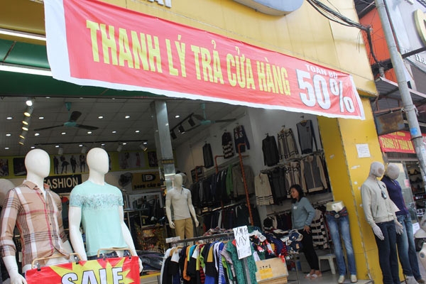 Cụ thể, rất nhiều cửa hàng treo biển hiệu giảm giá với các chiêu thức thu hút người đi đường vào mua sắm đó là những tấm biển có màu sắc nổi bật ghi số phần trăm được giảm như "xả hàng toàn bộ lên đến 70%", "mua 1 tặng 1", "xả hàng toàn bộ cửa hàng" hoặc "đồng giá sản phẩm chỉ từ 29k"….