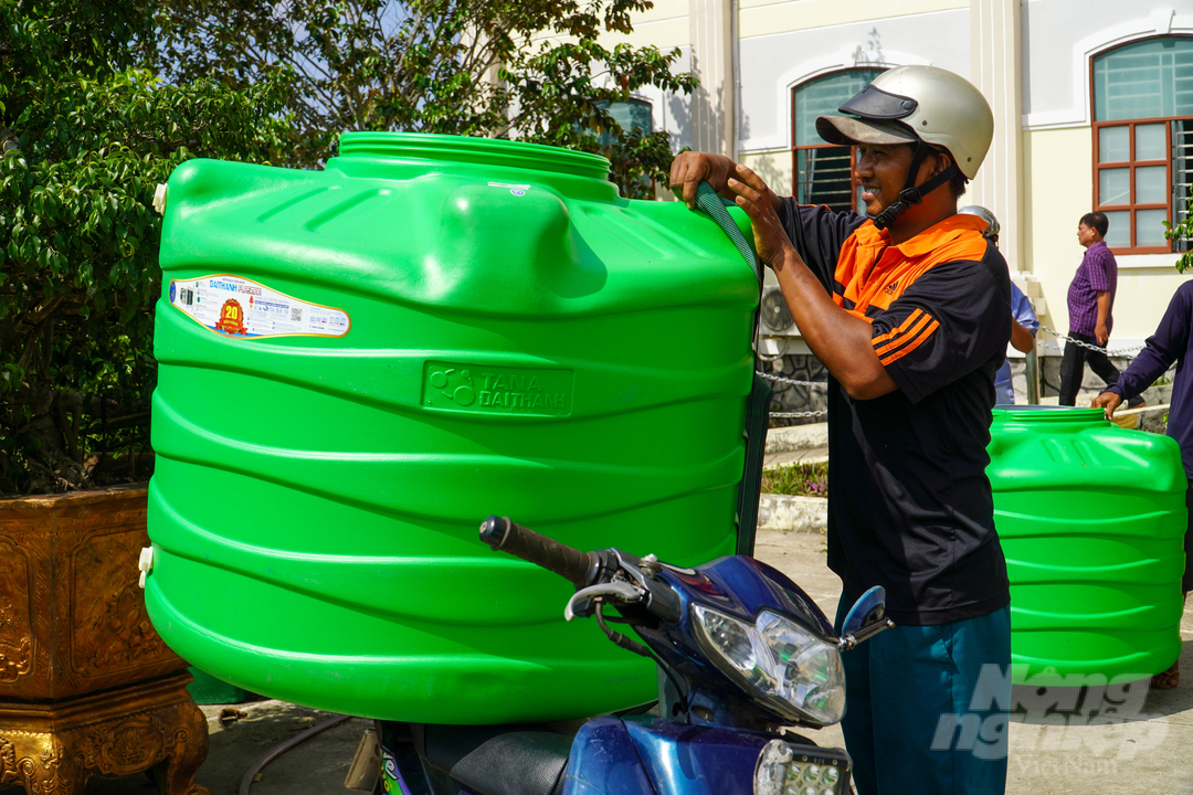 Nhớ lại thời điểm hạn mặn lịch sử những năm 2015 - 2016, bà Bông ngậm ngùi chia sẻ, nước sạch không có, sử dụng nước sông lại bị ô nhiễm, những tháng hạn khô khan, gia đình phải tốn chi phí đổi nước sạch sử dụng. Đến mùa mưa lại tranh thủ tích trữ nước để có nước sạch sử dụng mùa sau.