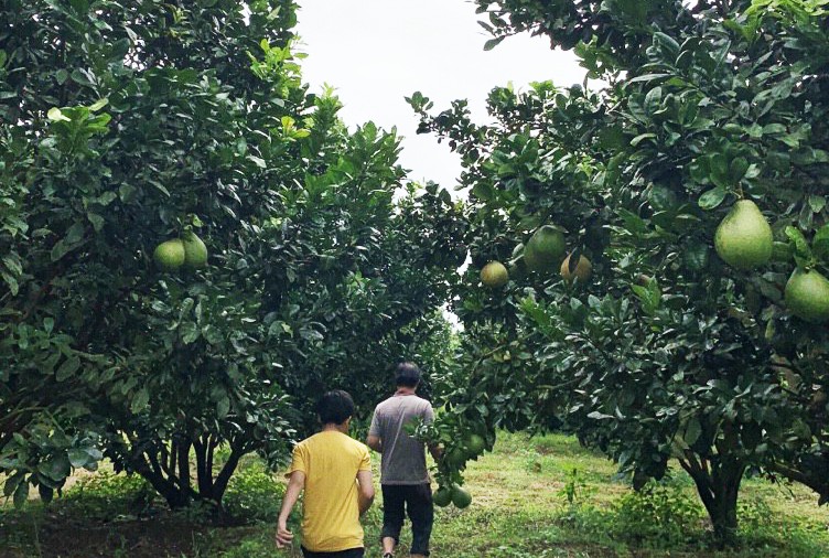 | Bưởi Sang\'s Farm được trồng theo hướng hữu cơ, không dùng thuốc diệt cỏ. Ảnh: Hoàng Hoài. |