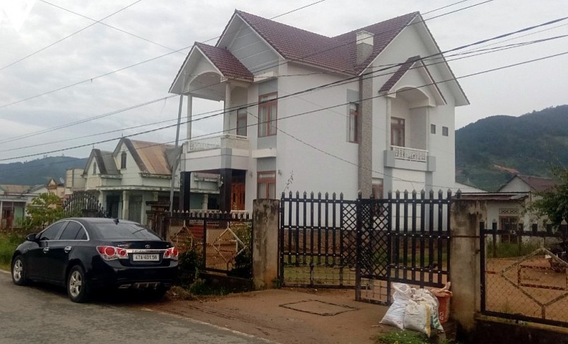 Hình ảnh ấn tượng đầu tiên khi đến thôn Phi Sour (xã Phi Tô) là rất nhiều biệt thự, nhà mái thái xen lẫn vườn cà phê và những khu nhà kính, nhà lưới. Gia đình chị Ka Lương ở sát mặt đường nhựa. Phía sau ngôi nhà khang trang là một khu nhà kính rộng 700m2 có hệ thống tưới nước, bón phân tự động.
