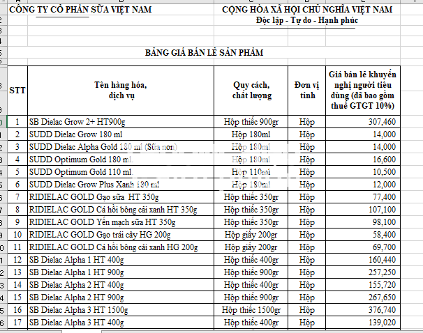 Công ty Cổ phần Sữa Việt Nam thông báo tăng giá một số sản phẩm. Các sản phẩm tăng giá trong phạm vi 5%, thời gian hiệu lực từ ngày 15/2/2023. Cụ thể: