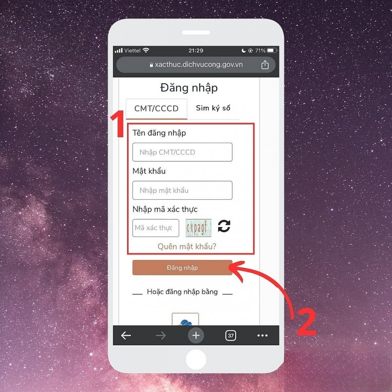 Bước 3: Sau đó, bạn tiến hành điền tên đăng nhập, mật khẩu và mã xác thực > Đăng nhập.